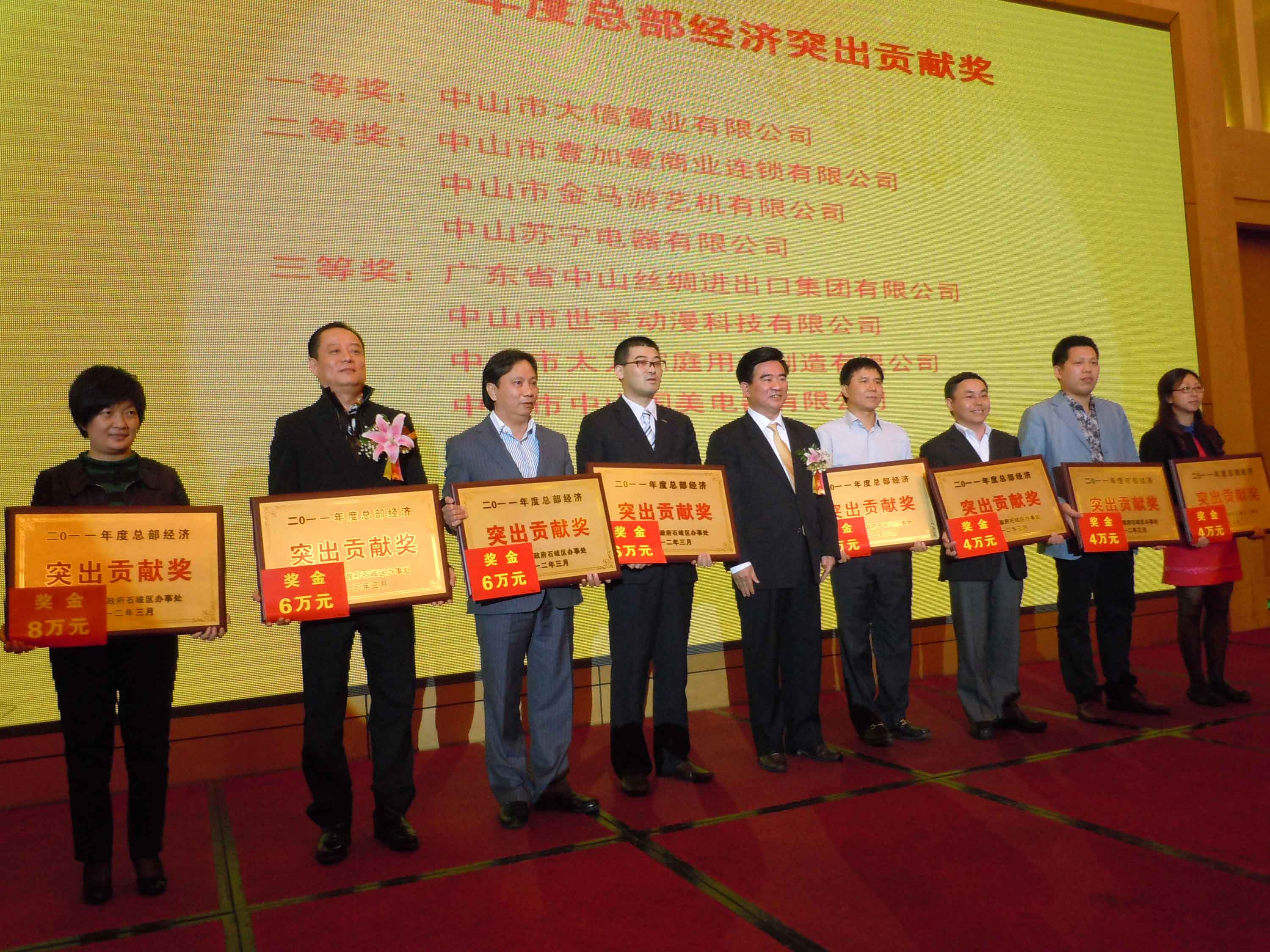 3月27日晚,為共聚石岐區工商企業情,表彰先進企業為區經濟發展作出的杰出貢獻,中山市人民政府石岐區辦事處在金鉆大酒店舉行了“2012年春茗暨經濟工作表彰大會”。市政府領導陳茂輝市長、譚培安副市長、市政協丘樹宏主席及石岐區領導出席了晚宴。