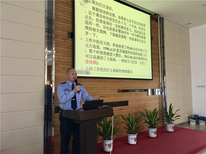 隨后由宏基派出所警官代表為新員工帶來治安法制教育,通過分享其豐富從警生涯中遇到的真實案件,講述違法犯罪的嚴重后果,警示新員工嚴格遵守國家法律犯規,做合格的守法公民。接下來保安隊代表結合公司消防安全規定,通過講述消防安全的理論和實際自救與救援方法流程,普及消防知識和提高新員工消防安全防范意識。