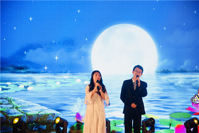 18:30,晚會正式開始。公司董事長鄧總、副總經理曾總分別為晚會致辭,他們向全體同事和家屬、以及奮戰在海內外現場一線的員工致以節日的祝賀和美好的祝愿,并鼓勵大家為了金馬公司更美好的明天再接再厲、奮力前行。緊接著是節目演出環節,一個個由員工自導自演的精彩節目陸續登臺演出,快歌輕盈如溪,慢歌綿長有致,小品張弛有度,舞姿輕盈優美。節目演出期間還穿插了激動人心的有獎競答互動環節,企業文化知識與中秋趣味問答相互承接,知識與生活交融,在熱烈歡快的氣氛中,臺上臺下形成一片熱鬧歡快的海洋歌聲,晚會氣氛不斷推向高潮。