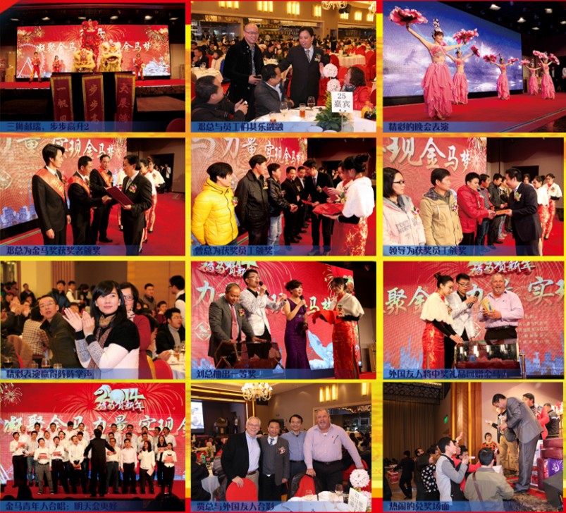 2月11日(農歷年十二),金馬在東區海港城隆重舉行新春晚宴,本次晚宴以“凝聚金馬力量,實現金馬夢”為主題,金馬人歡聚一堂喜慶新春,大會還邀請了公司國內外戰略合作伙伴及行業行家,晚宴筵開近百席,節目精彩紛呈,抽獎人人有份,送別了難忘的2013年,跨入充滿挑戰和機遇的2014年。