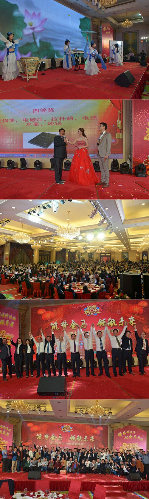 2018年2月28日晚上,中山市金馬科技娛樂設備股份有限公司2018年新春晚會在新城海港酒樓盛大舉行。全員參與、亮點紛呈;歌聲飛揚、舞姿曼妙;風采盡情展現,激情恣意揮灑,金馬人上演了一場載歌載舞的視聽盛宴。