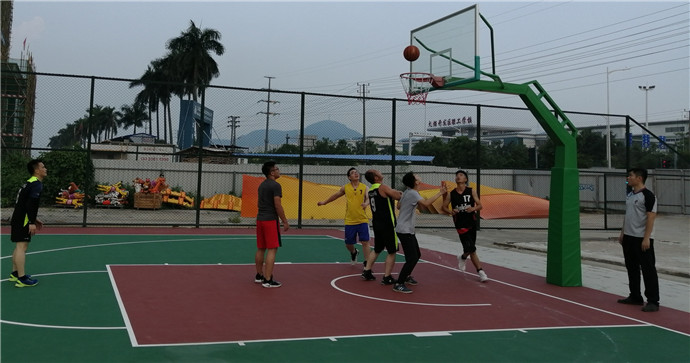 當天傍晚,在公司新投入使用的籃球場上,來自不同部門共48名員工組成的10支隊伍參加了比賽。小組循環賽中,各個隊伍均使出渾身解數,積極爭取晉級名額。由動漫隊、機加工隊、銷售等部門組建的聯合小分隊在小組賽中脫穎而出,逐鹿冠亞季軍。