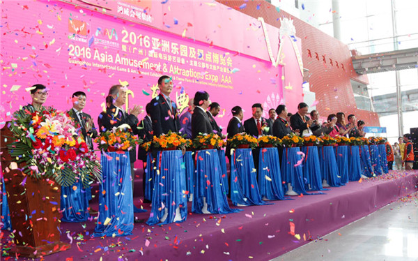 2017年3月8日上午10時(shí),2017亞洲樂(lè)園及景點(diǎn)博覽會(huì)暨第十三屆(廣州)國(guó)際電玩游藝設(shè)備·主題公園與文旅產(chǎn)業(yè)展覽會(huì)廣州中國(guó)進(jìn)出口商品交易會(huì)展館內(nèi)盛大開(kāi)幕。據(jù)悉,本屆展會(huì)歷時(shí)4天,總展覽面積80000平方米,設(shè)有展位4000個(gè),共有超過(guò)500家境內(nèi)外頂級(jí)企業(yè)參展,分別來(lái)自美國(guó)、法國(guó)、韓國(guó)、瑞士、比利時(shí)、荷蘭、澳大利亞、新加坡、臺(tái)灣、香港等國(guó)家和地區(qū)。與此同時(shí),本屆采購(gòu)方同樣是專(zhuān)業(yè)化和國(guó)際化的精英團(tuán)隊(duì),分別有來(lái)自美國(guó)、英國(guó)、俄羅斯、迪拜、荷蘭、印度、新加坡、印尼等國(guó)家和地區(qū)的采購(gòu)商團(tuán)體前來(lái)現(xiàn)場(chǎng)參觀考察。