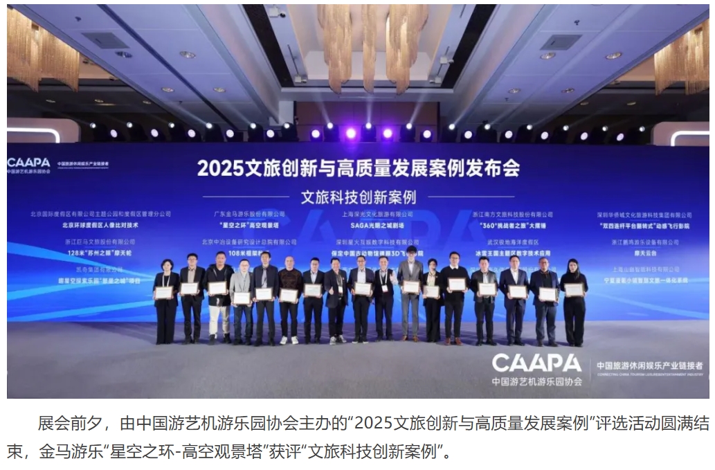 3月19日,2025 CAAPA北京展盛大開(kāi)幕,展會(huì)首日,金馬游樂(lè)舉辦了主題為“革新體驗(yàn),領(lǐng)航未來(lái)”的新品揭幕活動(dòng),為全新懸掛過(guò)山車(chē)“掠空者”揭開(kāi)神秘面紗。活動(dòng)現(xiàn)場(chǎng)人頭攢動(dòng),氣氛熱烈,中國(guó)游藝機(jī)游樂(lè)園協(xié)會(huì)會(huì)長(zhǎng)姚軍、副會(huì)長(zhǎng)戎志剛、TEA(主題娛樂(lè)協(xié)會(huì))董事會(huì)主席Matt Barton、印度游協(xié)會(huì)長(zhǎng)VGP Ravidas等行業(yè)重要領(lǐng)導(dǎo)和嘉賓齊聚一堂,共同為這款過(guò)山車(chē)揭幕。他們的到來(lái)不僅為活動(dòng)增添了光彩,也彰顯了金馬游樂(lè)在行業(yè)內(nèi)的強(qiáng)大影響力。