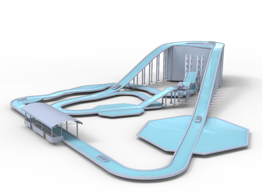 垂直提升激流勇進設備提升高度20米,具備垂直提升、跌落、背沖的特點。采用垂直傳動系統提升方式提升,減少設備占地面積。船體到達旋轉臺時進行方向調整,乘客可在游玩過程中分別體驗前向俯沖起伏、背向俯沖起伏兩種運動形式,同時可融入影視特效主題內容,體驗元素多樣,驚險刺激。