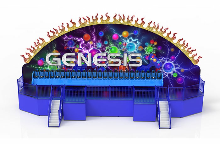 擺臂支撐座艙圓形運動,也可以實現正反兩種通過最高點的運動;占地面積小,外觀造型新穎;