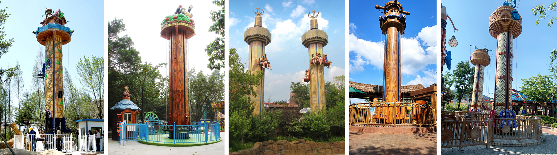 在乘客拉繩操作下快速升、降或停留在半空;快速上升時,因要雙手交替拉繩,使人產生一種攀爬向上的感覺;快速下降時又有高處下落的刺激;老、少咸宜。