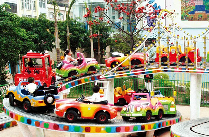 小朋友們開著自己心愛的小車輛翻山越嶺、追逐嬉戲;配有歡快優(yōu)美的音樂,氣氛輕松。小車沿軌道自動(dòng)轉(zhuǎn)向,盤旋在綿延起伏的立交軌道上,時(shí)高時(shí)低,你追人趕,令孩子們體會(huì)翻山越嶺和飛越時(shí)空的感覺,夠刺激而絕無(wú)恐慌之感。