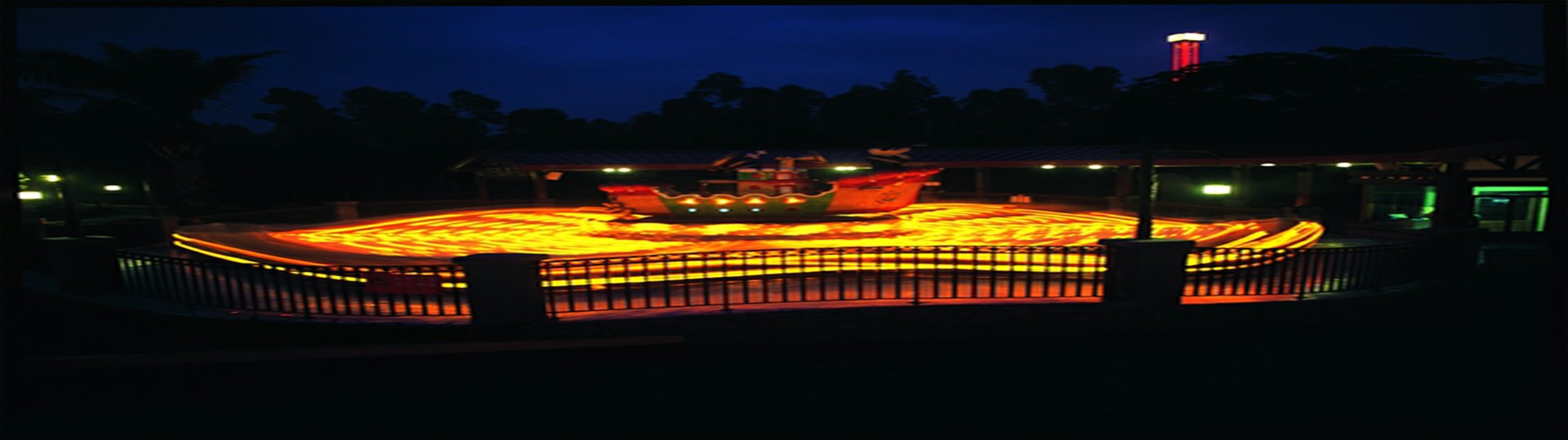 轉臂帶動船體旋轉,船體沿著落差達到0.8米的路軌上下升降,快速旋轉當中,游客交替感受到上升超重和下降失重,猶如大海行船,波濤洶涌,驚心動魄。配上美麗動感的燈飾,大型逼真的艦艇船模,氣勢磅薄的場面,是最吸引人的游藝機之一。
