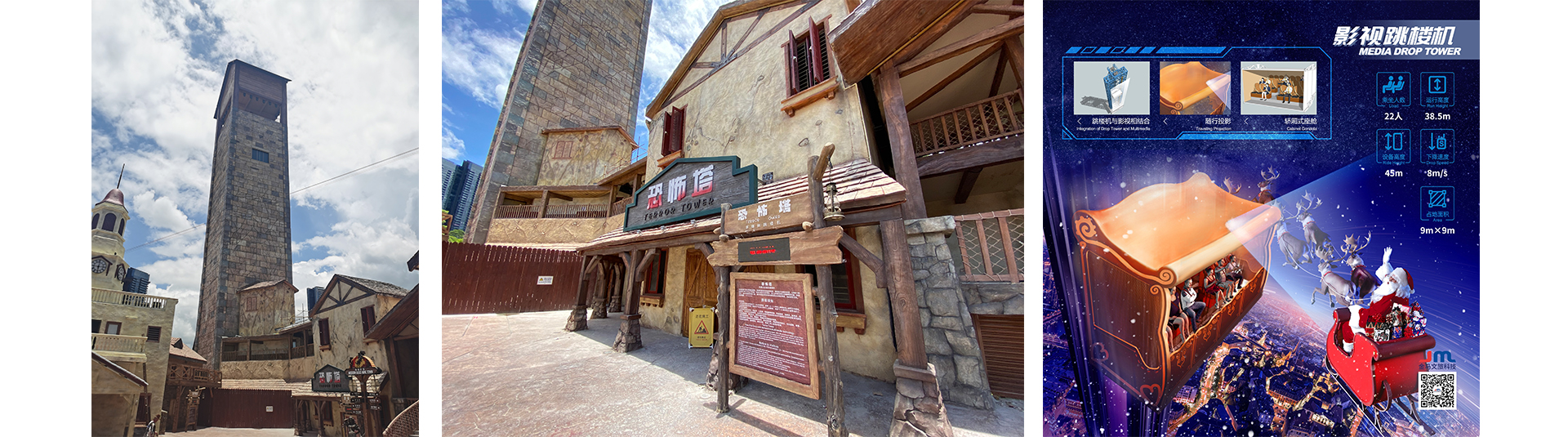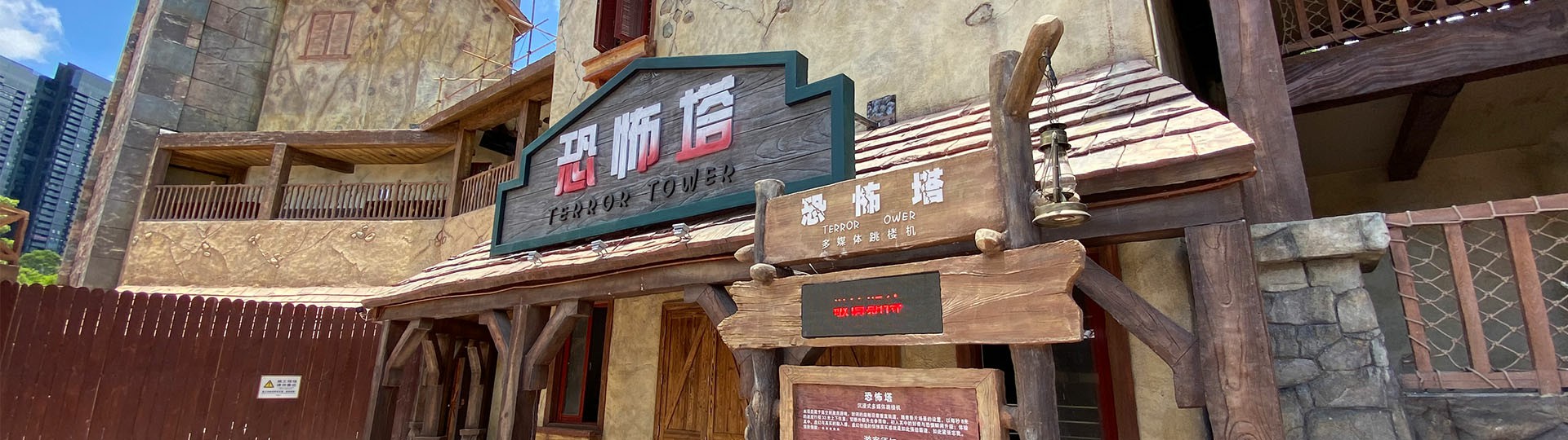 影視跳樓機(恐怖塔)項目是一款虛擬和現實相結合的高端游樂項目,其轎廂采用5面封閉、留出前面敞開的方式,供乘客上下及運行時觀看特效及塔外景象。設備座艙隨著故事情節上下跳躍,當座艙上升到塔體最高位置時,布置于塔頂的大型自動門突然打開,游客可欣賞整個景區的風景。之后座艙下降,又重新跌回影片情節,給游客前所未有的新奇體驗。