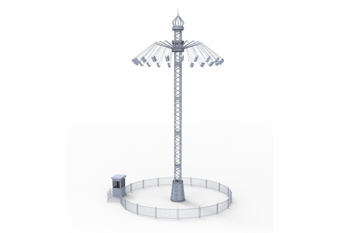 ??塔設備由塔體、滑?架、吊椅三部分組成。獨有雙?座椅設計,隨著速率越來越快,座椅在半空中向外飄散,在整個游玩過程中乘客可充分享受?速??的暢快,刺激?浪漫。