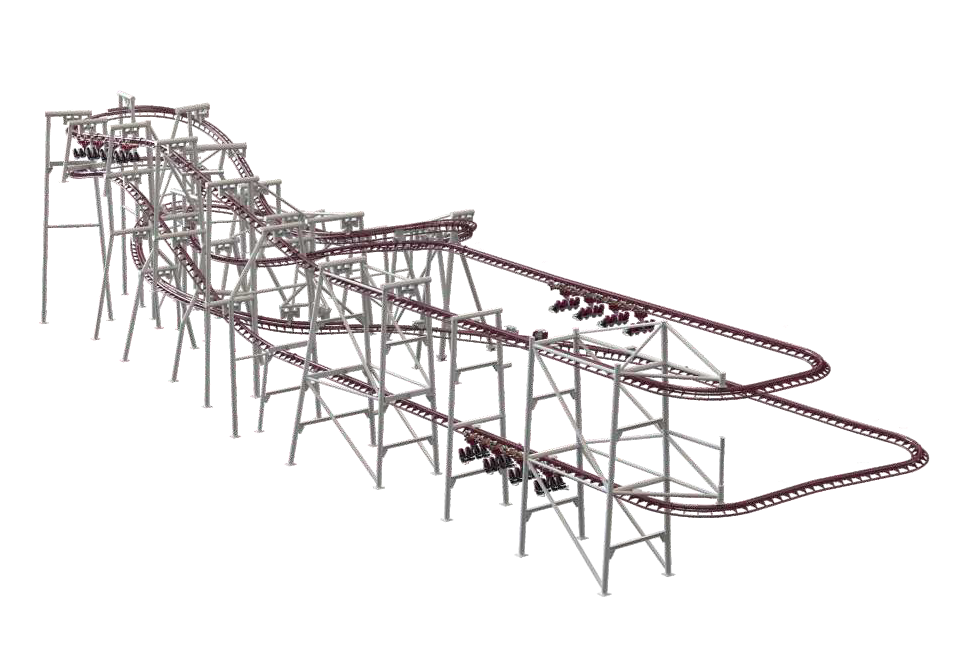 速降過山車由鏈條提升到軌道最高點后脫鏈,在經(jīng)歷自由滑行—速降—自由滑行—減速后,平穩(wěn)回到站臺。軌道設(shè)有俯沖、傾斜、速降等游玩元素,玩法經(jīng)典,能給游客帶來刺激愉悅的乘坐體驗。