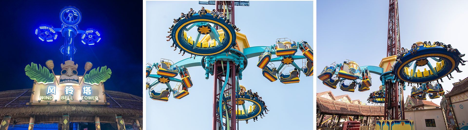飛旋塔采用雙座艙形式,即集成旋轉座艙與擺動座艙,實現滑行擺動角度多樣化,為游客提供新奇、刺激的游玩體驗。此款飛旋塔最高限制乘坐人數較同類飛行塔產品更多,且其采用的雙油缸安全模式具備安全冗余,由此達到運營效率與安全系數的雙項提升。