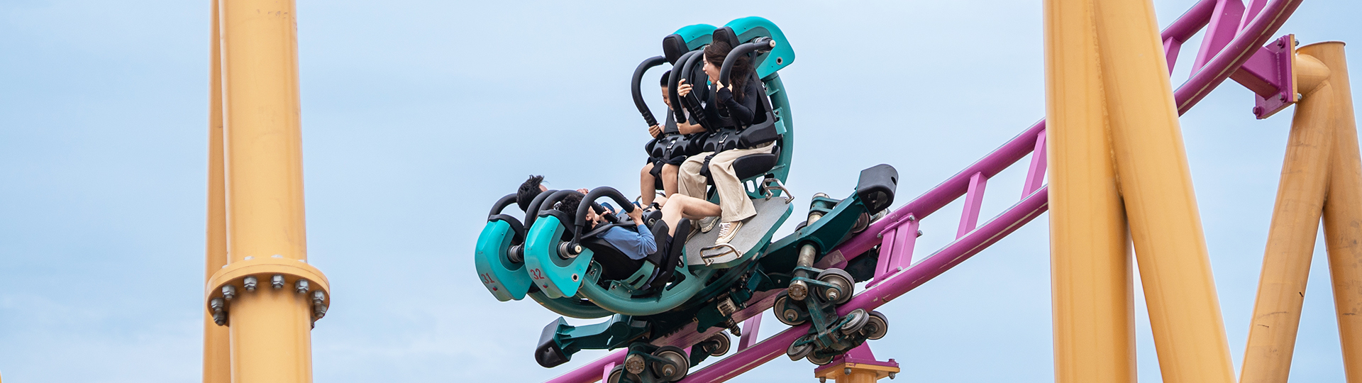 超炫過??將720°螺旋下降、?平螺旋環(huán)等元素與?轉(zhuǎn)回旋?體結(jié)合,同時創(chuàng)新地將過??有傾?的路軌引?到?旋滑?的軌道中,打造出兼具失重、超重和回旋的多重游玩體驗。四??體中游客兩兩對坐,促進互動交流。奧德賽歷險創(chuàng)意主題造型吸引著眾多情侶、親?游客前來挑戰(zhàn)。