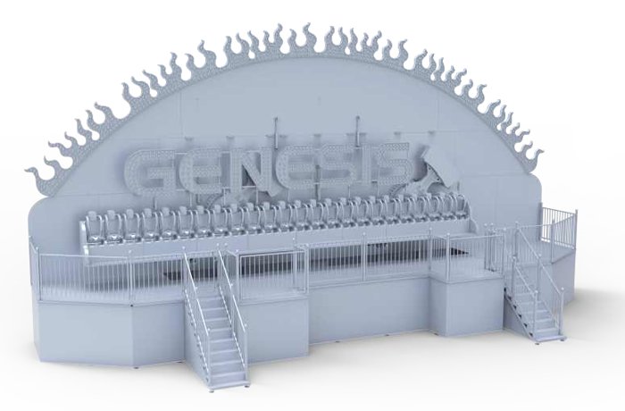 排山倒海在液壓馬達的驅(qū)動下,兩個擺臂帶動座艙轉(zhuǎn)動,配合座艙的整體平動,實現(xiàn)圓形的座艙運動軌跡。乘客并排座于座艙中充分感受順時、逆時交替變速旋轉(zhuǎn),勢如上山下山的時空交錯感。