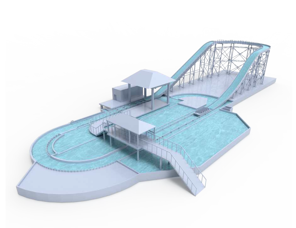 激流勇進設備提升?度16?,軌道蜿蜒??,抵達?坡制動段后經過減速到達下沖段,進?快速下沖。乘客在游玩過程中,體會?速沖浪、失重、離?、浪激等多重刺激,其樂?窮。