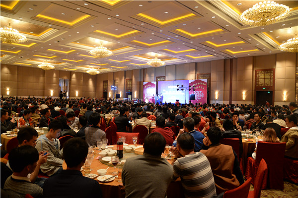 在主持人和公司全體員工的倒計時聲中,我們精彩的晚會開始了!伴隨著陣陣鑼鼓,五頭栩栩如生的獅子搖頭擺尾,神氣十足,以一場歡騰的獅舞拉開了此次盛會的序幕。LED大屏播放了“2016金馬形象篇”短片,記錄了過去一年里公司在形象、管理、產品、投資四方面有過的精彩瞬間!隨后鄧志毅董事長講話,總結了2016年度集團公司所取得的輝煌成就,并指出了過去工作中需要改進的方面;對于明年的工作部署及戰略規劃,鄧總也作了詳細的闡述,讓我們更加信心滿滿,對金馬的明天充滿希望和期待!進入頒獎環節,從年度技能競賽評優、年度精益評優到公司年度獎項評優,100多名與金馬攜手并進、唇齒相依的人,他們為金馬的發展付出了艱辛和努力,在這個特別的日子里,公司為他們舉辦了隆重的表彰儀式,并由公司高層領導為他們逐一頒發榮譽證書和獎金。在一片喜慶祥和的氣氛中,公司領導上臺祝酒,舉杯相慶這個歡樂美好的時刻,并感謝全體金馬人多年來的一路陪伴和辛勤付出。