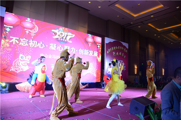 2017年2月8日,中山金馬公司在大信商務會議中心酒店(原香格里拉酒店)成功舉辦2017年“不忘初心·凝心聚力·創新發展”主題新春晚宴。在這辭舊迎新的日子里,公司全體職工齊聚一堂,總結成績斐然的2016年,共同慶賀2017新年的到來!